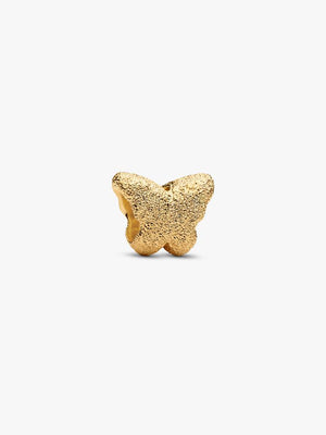 Make an (under)statement with Pandora Minis. Our 14k gold-plated butterfly charm is small in size but big in meaning. Featuring a diamond-point texture, it's ready to fly onto your stack.