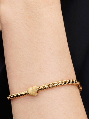 A new look for charms: our iconic Be Love heart now shines in 14k gold plating with a textured finish. Smaller in size but full of meaning, it’s perfect to add subtle love to your everyday style.
