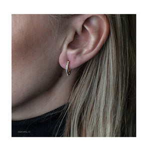 These stunning diamond hoop earrings are crafted from 10K yellow gold and have a total diamond weight of 0.10 carats. These elegant earrings showcase a timeless design with sparkling diamonds elegantly set along the front. Perfect for any occasion, their lightweight and secure clasp ensures comfort and durability, making them an essential addition to your jewelry collection.
