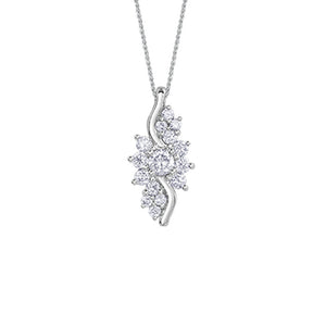 Beautifully handcrafted in 14K white gold and 0.50 carat total diamond weight. The pendant showcases a cluster of diamonds in the center and a curved line of diamonds on the side, creating a graceful and elegant look. The pendant comes with a white gold chain.