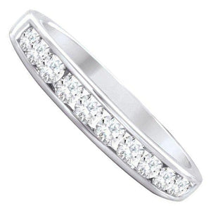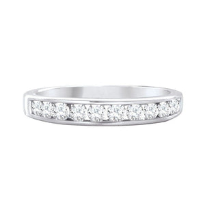 10 karat white gold 0.50TDW diamond channel set semi eternity wedding band. This elegant eternity 11 natural diamond ring is a classic that will glitter across her finger for all of eternity.