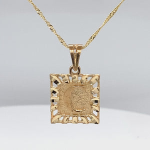 10 Karat Yellow Gold Letter C Initial Square Pendant