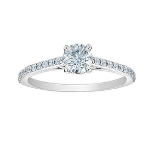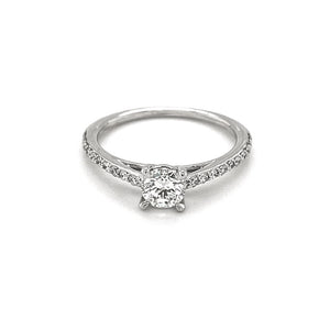 This beautiful lab-grown diamond solitaire ring is the perfect way to accessorize a formal wardrobe with its brilliant design. Meticulously handcrafted to perfection this ring has one round sparkling 0.50ct diamond in claw setting to create an attractive look. A total of 0.20 carat of diamonds are set on 14K white gold shoulders to add to brilliance.