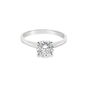 This exquisite 14K white gold engagement ring featuring a 1.01-carat lab-grown diamond. The ring has a simple yet elegant design with a round brilliant-cut diamond set in a four-prong setting. The yellow gold band is polished and smooth, providing a classic and timeless look. The lab-grown diamond is clear and sparkly, making it an attractive and eco-friendly alternative to natural diamonds. This ring is a perfect choice for anyone who loves a classic and simple design. The diamond will be IGI certified and the certificate will accompany the ring.