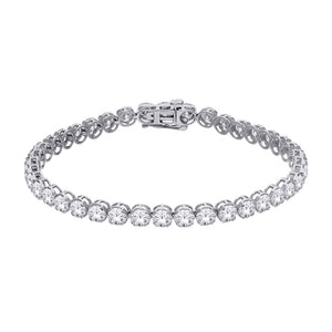 This 5.00TDW lab-grown diamond tennis bracelet is beautifully crafted in 14K white gold. A seamless line of round-cut diamonds—totaling 5.00 carats—gracefully encircles the wrist, each securely nestled in classic prong settings that enhance their brilliance. This stunning bracelet can be worn on its own for a refined statement or layered with other pieces for added glamour. A perfect gift for Mother’s Day, Birthdays, Valentine’s Day, Graduation, Christmas, or any cherished occasion.