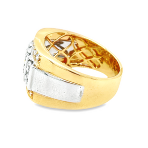 Exclusively handmade in 14K yellow and white gold with 1.50 carat of total diamonds. This ring is set with 8 large diamonds to add to brilliance and sparkle giving it a rich look. This bold and stylish look is sure to add a touch of elegance to your style.