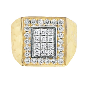 This 14k yellow gold solid men's nugget style ring is handmade with 1.25 carat of total round cut-diamonds. This ring has a square top with 12 slightly larger diamonds set in an inner square surrounded with a halo of diamonds to give it a rich and stunning look. This beautiful look is sure to add a touch of brilliance to your style.