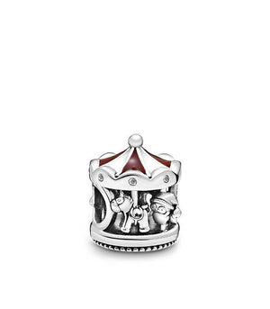 Join Bruno the Unicorn from the Pandora Friends on this magical Christmas Carousel Charm in sterling silver. Bruno the Unicorn is joined by a penguin in a Christmas hat as he rides the Christmas carousel. Hand-painted berry red and white enamel and sparkling cubic zirconia add to the bright seasonal feeling of the charm, which is engraved with the uplifting and inspirational words “Love Peace Believe”.