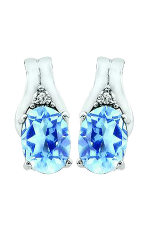 December Blue Topaz Birthstone Earring with Genuine Diamond accent on top of the centre stone set in 10k White Gold. It is a beautiful delicate earring designed to bring out the true colour of the coloured gem. It is a perfect gift for yourself or for someone special to celebrate the special birthday or a memorable moment.