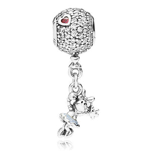 Let love float into your life with this dangle charm in sterling silver. Like a glittering balloon, the Pave ball is embellished with a heart-shaped cubic zirconia and the loveable Minnie Mouse dangles from below. Wear the Disney-inspired design on a Pandora Moments bracelet to lend subtle movement and sweet sentiment to your style. It also makes a meaningful gift for any Disney aficionado.