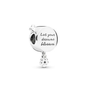 Imagine a garden filled with beauty and wonder: this sterling silver charm encapsulates the feel of a dreamy gardenscape, complete with a hand-painted enamel rainbow, a dangling flower and pretty butterfly. Wear it as part of a floral styling.