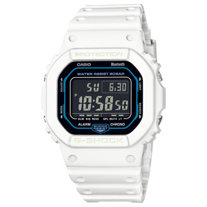 Time travel into uncharted worlds with a bold design that transports you to near-future sci-fi sensations. Inspired by the pages of science fiction, the crisp and clean white design is accented with touches of blue and purple. The bezel is printed with glow-in-the-dark paint that makes the G-SHOCK logo appear in the dark. Size of case 42.3mm. Resin case and bracelet with black dile. Shock resistant mineral glass. 200 meter water resistance. Buckle clasp.