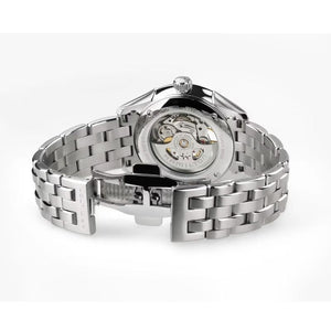 Seamlessly blending tradition with innovation, the Jazzmaster Skeleton 40mm offers a glimpse of its Swiss automatic movement in action. Set in striking Empire green, the open-worked dial reveals the automatic H-10-S movement, featuring 25 jewels and an impressive 80-hour power reserve. This iconic timepiece is paired with a sleek stainless steel metal bracelet, exuding both modern dynamism and timeless appeal.