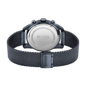 This Hugo Boss watch has a colour coated stainless steel case 44mm in diameter and is fitted with a metal strap. Inside the case lies a movement and the watch features a mineral crystal. Water resistance upto 50 meters.