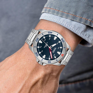 Hugo Boss Streetdiver 1530224 is a practical and special Gents watch from #STREETDIVER collection. Case is made out of Stainless Steel and the Blue dial gives the watch that unique look. 50 metres water resistancy will protect the watch. Push button deployment clasp, case size 44mm.