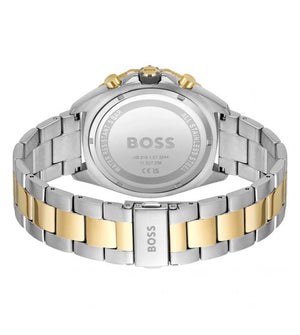 BOSS gents watch from the Energy family. Featuring a light yellow gold IP 44mm case, grey dial and light yellow gold bracelet. Water resistant to 5ATM. Quartz movement. Mineral crystal. Deployment clasp with push buttons.