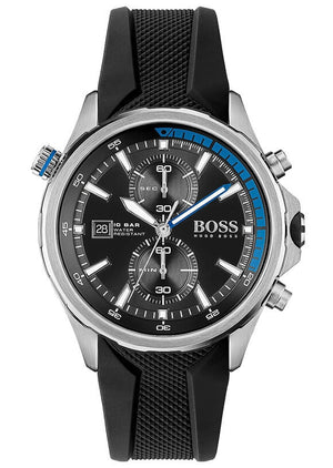 Hugo Boss 1513820 is a functional and attractive Gents watch from Globetrotter collection. Material of the case is Stainless Steel and the Black dial gives the watch that unique look. Colors > Dial: Black, Strap: Black, Case: Silver. Very comfortable Silicon strap. The water resistance is 10 ATM. A scratch proove hardened, Mineral glass protects your watch from involuntary injuries. Case size 46mm.
