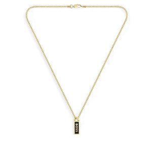 The Hugo Boss Jewellery Kassy 1580678 men's necklace combines luxury and sophistication . Crafted from gold-plated stainless steel ,its modern design with engraved pendant is the ideal complement for a stylish and elegant look.