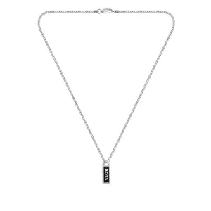 Introducing the Hugo Boss Men's Kassy Stainless Steel Necklace 1580677, a striking accessory designed for the modern man. This premium necklace showcases a sleek stainless steel finish, offering both durability and style. Ideal for any occasion, it adds a sophisticated touch to casual and formal outfits alike. Length 55cm.
