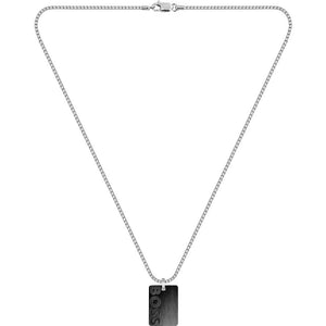 Inspired by military plates, this sublime necklace full of charisma and elegance will bring the finishing touch to any of your looks. From the ID collection , it is made of steel and consists of a medal hanging from a magnificent Venetian chain. The medal has two facets, one silver colored and a second black, and gives you the choice to wear it as you wish. The necklace closes with a hook and displays a length of 61.00 cm.