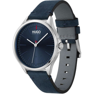 Hugo smash 1530202 is a functional and attractive gents watch from #smash collection. Material of the stainless steel case which a blue leather strap. Case size 43 mm. Stands for a high quality of the item while the dial color is blue. This model has got 50 metres water resistance - it can be submerged in water for periods, so can be used for swimming and fishing. It is not recommended for high impact water sports. Quartz movement. Mineral crystal. Buckle clasp.