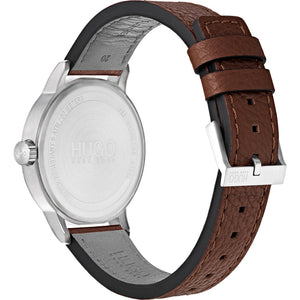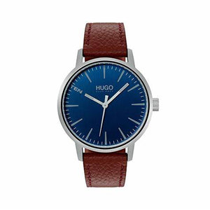 Hugo Boss men's blue dial brown leather watch 1530076. Stainless steel case with blue dial. Brown leather strap with traditional buckle clasp. Case size 42mm. Water resistance upto 50 meters. Mineral crystal. Quartz movement.