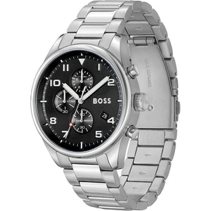 This Hugo Boss watch has a case made of stainless steel with a diameter of 44 mm and is fitted with a metal band. Inside the case lies a Seiko Instruments Inc. movement and the watch features a Mineral crystal.