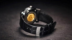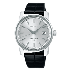 King seiko 140th anniversary limited edition automatic mens watch SJE083J1. Stainless steel (super hard coating) case with a black crocodile leather strap, silver dial. Automatic movement with manual winding. Case thickness: 11.4 mm, case diameter: 38.1 mm, case length: 44.7 mm. Water resistance upto 50 meters / 5 bar. Box shaped sapphire crystal. Anti-reflective coating on crystal inner surface. Accuracy +15 to -10 seconds per day. Duration approx. 45 hours. LIMITED EDITION on the case back. Screw case back. Serial number engraved on the case back. 26 jewels, date display, stop second hand function.