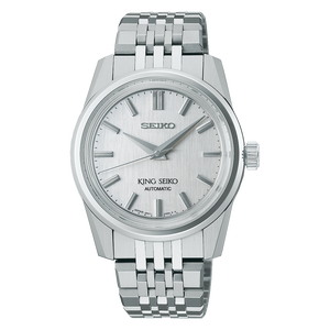 This timepiece is only available from selected boutiques worldwide- exclusively available through our London Knightsbridge boutique. It is a reinterpretation of the 1965 ‘King Seiko’ KSK series; highly sought-after accurate mechanical watches with a stylish angular profile. In the 1960s, King Seiko timepieces led Seiko Watch Corporation’s developments in world-leading technical precision, along with Grand Seiko. ‘King Seiko’ originated when multiple Seiko factories created different watches to encourage innovation – one of the Japanese watch brand’s constant aims. This version is updated from its original inspiration with a newly developed slim structure combined with a sapphire box glass, for a case depth of 10.33mm, the slimmest of 6R calibre models. It features a King Seiko crest mark on the crown and caseback and the bracelet is inspired by the original 1960s design through a combination of mirror and hairline finishing. The delicately cut three-dimensional indices are beautifully placed on the fine and radiant dial and the 12 o’clock marker is lightly finished by a pattern technique of making just one single surface incision at a time. Its stately, dignified and majestically classic looks remain.