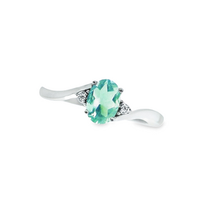 March Synthetic Aquamarine Birthstone Ring with Genuine Diamond accent on both sides of the centre stone set in 10k White Gold. It is a beautiful delicate ring designed to bring out the true colour of the centre gem. It is a perfect gift for yourself or for someone special to celebrate the special birthday or a memorable moment.