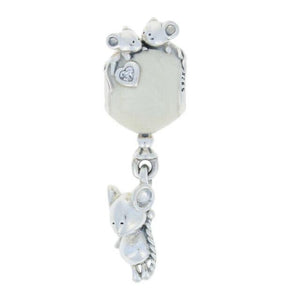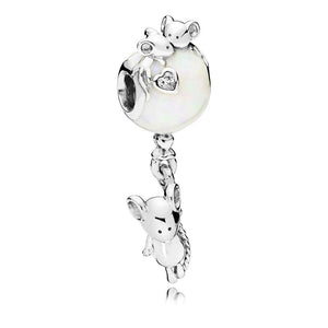 Detailed with adorable mice, this sterling silver dangle charm is a cute addition to personal bracelet styling, adding subtle movement to your look. Crafted from sterling silver, it's shaped as a balloon layered with shimmering silver enamel that's been applied by hand. A heart-shaped cubic zirconia completes the pretty piece, made for Pandora Moments bracelets.