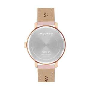 The BOLD Evolution 2.0 is defined by an elevated, bold case and a dimensional micro-textured dial. This 34mm two-hand watch features a light pink lacquer dial, slim rose gold tone hands, and our signature dot at 12 o'clock.