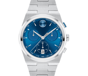 The BOLD Quest Chronograph looks to the future with a shaped case and an integrated bracelet. This 42mm chronograph features a blue dial with satin-finish subdials, stainless steel hands, and our signature dot at 12 o'clock. Water resistance up to 50 meters. K1 mineral crystal. Deployment clasp with push button.