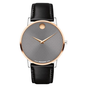 The Museum Classic is the purest interpretation of Movado's Museum Dial—an icon of modern design seen in art institutions around the world. This 40mm watch features a cool grey textured sunray dial, rose gold tone dauphine hands, and our signature dot at 12 o'clock.