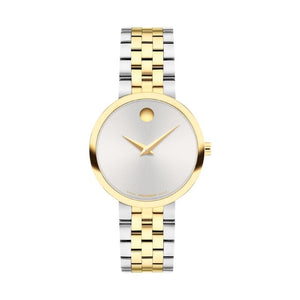 The Museum Classic is the purest interpretation of Movado's Museum Dial—an icon of modern design seen in art institutions around the world. This 29.5mm watch features a silver white sunray dial, yellow gold tone dauphine hands, and our signature dot at 12 o'clock.