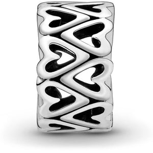 Hearts are a quintessential part of Pandora’s DNA and the perfect emblem to show that love is love! Hearts are the star of this sterling silver Openwork Freehand Heart Spacer Charm, mirroring and interlocked throughout the entire design. The sterling silver heart shape is freehand in design, signifying perfectly imperfect love, the kind that’s real. Add this charm to your favourite Pandora carrier for a little touch of love in your day.
