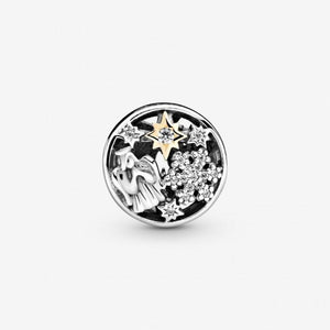When you can't be with them to celebrate, send someone special a Christmas greeting with this openwork charm in sterling silver, engraved along the edge with "Merry Christmas." Accented with a 14k gold star, cubic zirconia and an angel, it lifts any Pandora Moments bracelet with festive spirit.