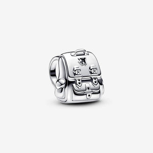 Heed the call for adventure with the Adventure Backpack Charm. A scaled-down sterling silver backpack features realistic details including wraparound straps, handle, buckles and pocket. An airplane symbol is imprinted on the front and a message is engraved on the underside: "Life is for adventure." An important and wise reminder in the form of an irreverent charm, this charm also wraps gracefully over any carrier you wear it with for a uniquely playful styling element.