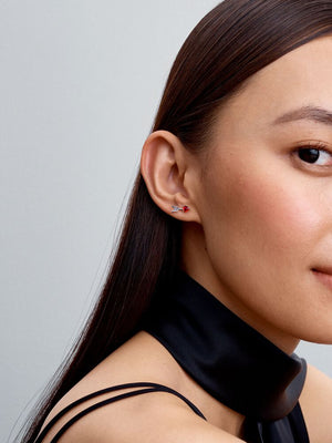 Be hit by Cupid's arrow with these romantic studs. Each earring features four bead-set cubic zirconia, with a heart-shaped Murano glass motif at the tip as the head of the arrow. Love at first sight? We thought so.