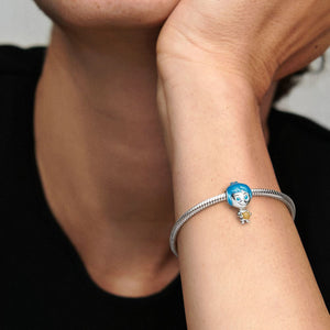 Find your inner joy with Pixar's Joy. This sterling silver charm captures the shiny and optimistic personality of the beloved character from Disney and Pixar's Inside Out, with glittery blue enamel for her hair. Joy holds a Memory Orb finished in special glow-in-the-dark enamel to capture the magic of happy memories. Style this charm on your Pandora Moments bracelets or charm holders as a reminder to stay positive and find the joy in every day.
