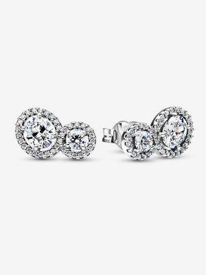 Tap into the power of two with the Embracing Halo Stud Earrings. Each sterling silver earring features two sparkling stones –one round and one oval – connected by a Pave halo. Inspired by the precious links between us and our loved ones, as well as the idea of two souls coming together in an embrace, these earrings are as meaningful as they are timeless.