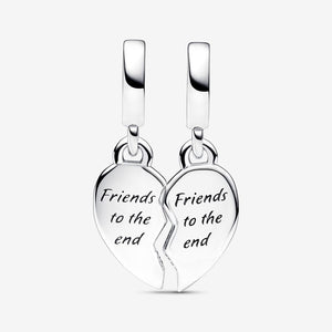 Show them that they're one in a million with the Friends Splittable Heart Dangle Charm. Nothing says best friends forever like gifting your bestie one half of a sterling silver charm engraved with the message "Friends to the end" on both halves. Both sides of the heart feature a polished center with sparkle along the outline. The heart-shaped design features a crack in the middle, which completes the heart shape when the two halves are placed together. A great friend is hard to find, so celebrate yours with a special Pandora Moments charm that represents your bond.