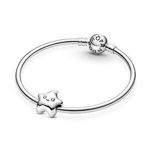 Take a shine to the Isa the Star Charm. Hand-finished in sterling silver, this design includes a grooved smiling mouth, eyes with pretty eyelash details and a cute swirl on top. As a Pandora Friend, Isa loves shining a spotlight on others and inspiring her friends to reach their goals. This little star charm represents ambition and determination, so always remember to shoot for the stars with Isa the Star by your side.