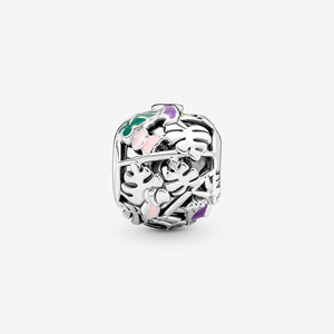 Welcome to the jungle! Peek between the lush tropical leaves and spot colourful birds and butterflies. This sterling silver openwork charm features an intricate pattern of leaves and jungle creatures highlighted in hand-applied enamel. Style it on your favourite bracelet, necklace or hoops and dream of a leafy green paradise.
