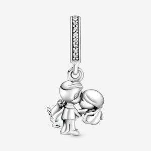 Keep a memento of your special day with the sterling silver Married Couple Dangle Charm. Let the romance of saying “I do” live on with this emotional charm featuring a newlywed couple kissing. The charm depcits the groom gently holding his bride as she carries her flowers in her hands. The bail is adorned with clear cubic zirconia. Add this meaningful piece to your collection or surprise a bride-to-be. Available in-store and online.