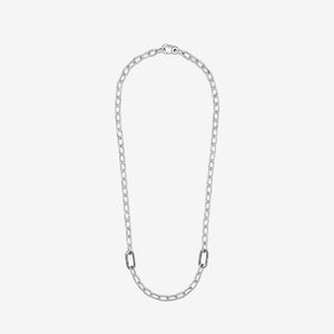 Your statement jewellery starts here. This sterling silver Pandora ME Link Chain Necklace has endless styling possibilities to choose from, with two openable styling connectors at the front - designed with grooved surfaces to set them apart - twelve links between each styling connector and a small carabiner clasp closure. You can keep the original length, make your link chain longer or turn it into a choker, all by adding and taking away links. Once you’ve customised your link chain, remix it with meaningful medallions across all styling links and connectors, then add mini dangles to the openable styling connectors to tell your story.