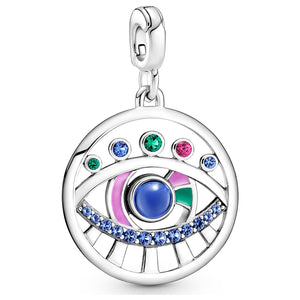Make sure all eyes are on you with the Pandora ME The Eye Medallion. Hand-finished in sterling silver, our meaningful medallion features an eye motif that evokes looking deep beneath the surface at inner beauty. Featuring hand-applied magenta and green enamel, this significant amulet is set with red, blue and green brilliant-cut crystals, for a vibrant statement you can mix and match across your link chains. With a simple click-to-close bail, style yours on your Pandora ME closed styling links and openable styling connectors across link chain bracelets, necklaces and hoops, or on your styling ring connector.