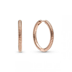 Create an instantly iconic look with the Pandora Moments Charm Hoop Earrings. Hand-finished in 14k rose gold-plated metal, these earrings feature Pandora's famous snake chain pattern. Each hoop can hold up to three charms, dangles or pendants (just be careful not to overload them, so they don't weigh down your ears). Sleek on their own or personalized when paired with your favorite charms, these hoops are a style win.
