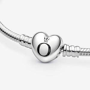 Set your heart a-flutter with this romantic version of Pandora's bestselling charm bracelet. Hand-finished with a heart-shaped clasp, this sterling silver snake chain bracelet looks stunning on its own but even better adorned with your favourite Pandora charms and clips. Layer it with contrasting Pandora chain bracelets for a chic, multi-layered look..