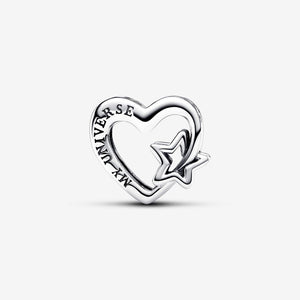 Wear your heart on your sleeve with the Openwork Family Heart & Star Charm. Heart and star motifs adorn the latest Pandora Moments charms; their symbolism honouring the importance of family. A gift for yourself or someone you love, this charm features cut-out stars along the side of the charm and a larger cut-out star at each side of the heart. Two beloved motifs come together to create a sterling silver charm that shines (almost) as bright as the ones you love the most.